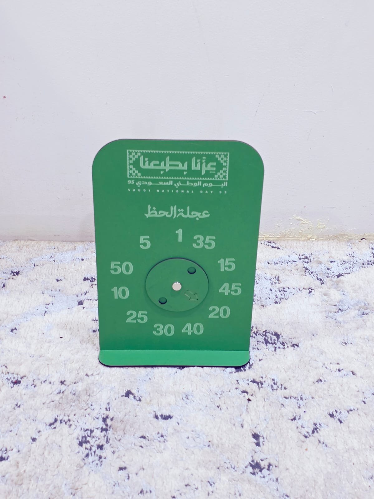 عجلة دوارة أنيقة بأرقام 5-50، مثالية لمسابقات وجوائز بتصميم وطني مميز!